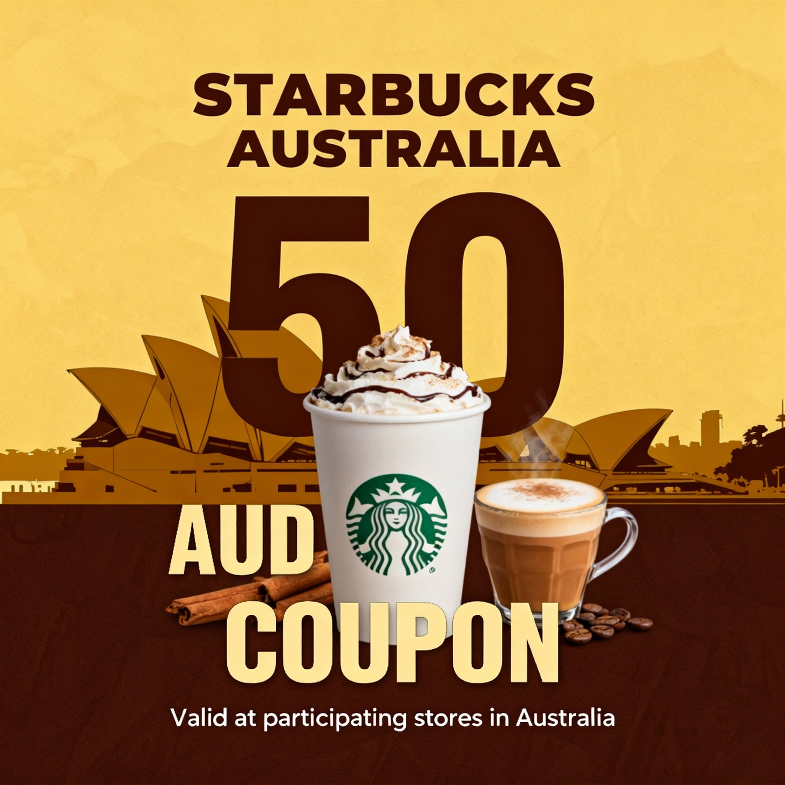 Get a $50 Starbucks voucher for just $1.99 and enjoy huge savings on your favourite drinks and treats. Redeem easily through the Starbucks App or website. Your coupon code and full instructions will be delivered directly to your email within 24 hours